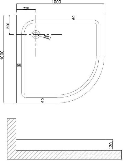 - Размер (ШхГхВ): 1000х100х130 мм.