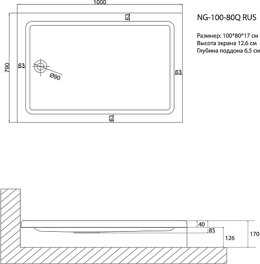 - Размер (ШхГхВ): 1000х800х170 мм.