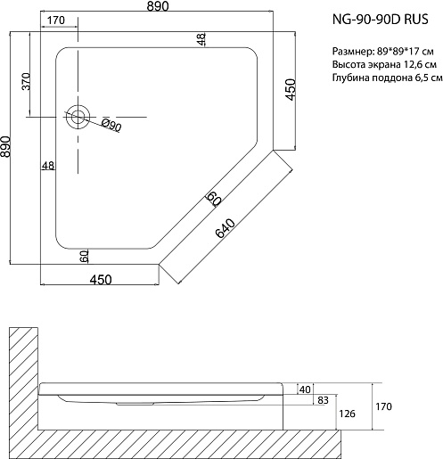 Niagara Душевой поддон Nova NG-90-90D RUS