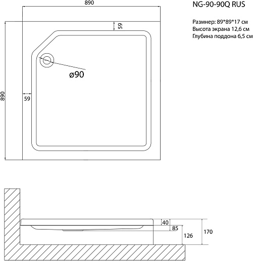 Niagara Душевой поддон Nova NG-90-90Q RUS
