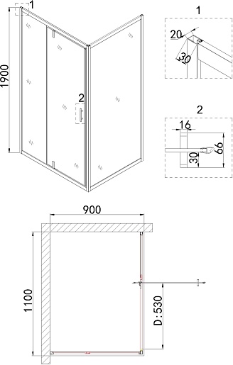 - Стекло: закаленное прозрачное, толщиной 6 мм.