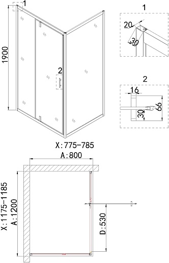 Niagara Душевой уголок Nova 120x80 NG-43-12AG-A80G