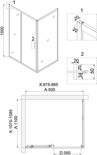 - Стекло: закаленное прозрачное, толщиной 6 мм.