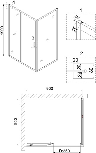 - Стекло: закаленное прозрачное, толщиной 6 мм.