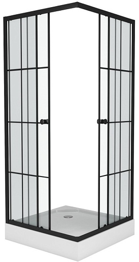 Уголок отличается простой и очень быстрой сборкой по технологии Quickstaple, которая потребует менее получаса. Квадратная форма – универсальна, поэтому разместить душ можно на любом участке ванной комнаты. Алюминиевый профиль (в приятном чёрном исполнении) отличается надёжностью и стойкостью к высокой влажности. Исполнение раздвижных дверей включает наличие стильных металлических ручек и двойных роликов. Толщина прозрачного стекла с чёрным принтом составляет 6 миллиметров. Поддон уголка – низкий, имеет несъёмный экран.оснащение: