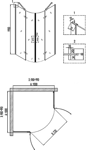 - Форма: четверть круга.