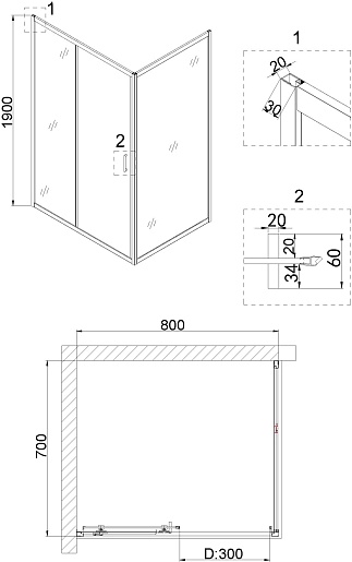 Душевой уголок Niagara Nova 80x70 NG-82-8AB-A70B.