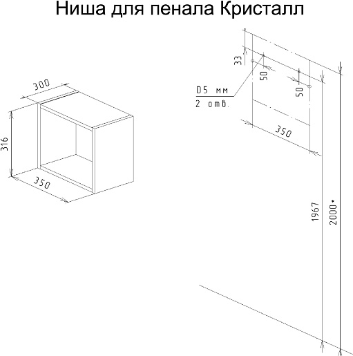 Ниша для пенала Бриклаер Кристалл 35 - арт. 4627125414497.