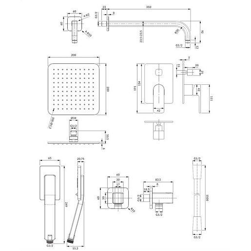 - верхний душ латунный (WG220/OBL), размер: 20x20 см.