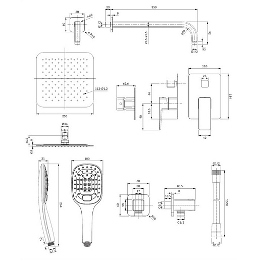 - верхний душ из нержавеющей стали (WGU225CR), размер: 25x25 см.