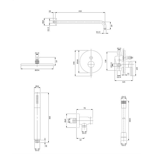 - душевой шланг в латунной оплетке, длина: 150 см.