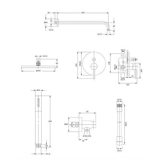 - душевой шланг в латунной оплетке, длина: 150 см.