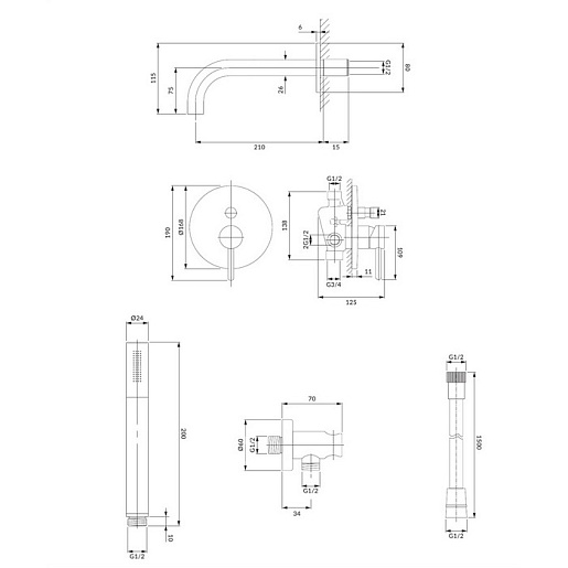 - латунный угловой соединительный элемент (8873BL), с держателем для душевой лейки.