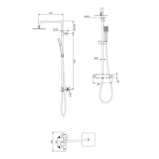 - смеситель термостатический для душа; - ограничитель горячей воды на 38°C; - верхний душ (WGJIMJIMBL), размер: 20x20 см, отдаленность от стены: 43 см; - душевая лейка (JIMJIM-RBL) с 3-мя функциями; - режимы струи: дождь, хлыст, смешанный; - душевой шланг в оболочке ПВХ (028BL), длина: 150 см; - переключатель струи верхний душ/ручной душ, встроенный в смеситель; - регулируемая высота, минимальная/максимальная высота системы: 93 см/156 см.