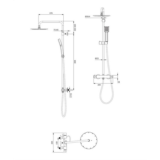 - смеситель термостатический для душа; - ограничитель горячей воды на 38°C; - верхний душ (WGNEVADABL), размер: ø22,5 см, отдаленность от стены: 43 см; - душевая лейка (NEVADA-RBL) с 3-мя функциями; - режимы струи: дождь,турбо, массаж; - душевой шланг в оболочке ПВХ (028BL), длина: 150 см; - переключатель струи верхний душ/ручной душ, встроенный в смеситель; - регулируемая высота, минимальная/максимальная высота системы: 93 см/156 см.