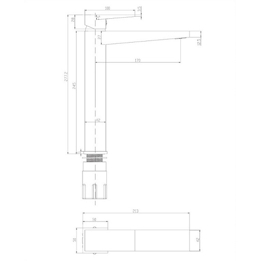 - полная высота смесителя: 28 см;