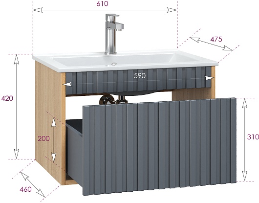 Тумба под раковину Дайлер 60 подвесная графит/дуб сонома