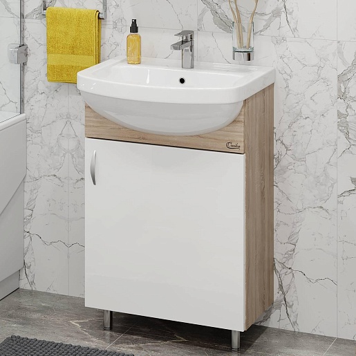Тумба с раковиной Onika Эко 52.10 белый/дуб сонома - арт. 105207 / 1.3120.1.S00.11B.0.