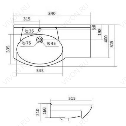 Мебельная раковина Коралл 82 крыло справа
