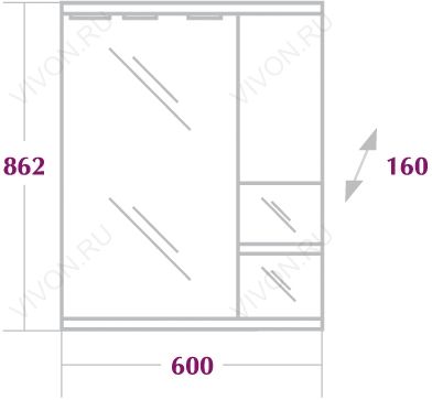 - Размеры (ШxГхВ): 600x160x862 мм.