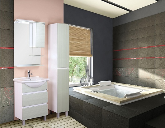 В комплекте: тумба, раковина, зеркальный шкаф, ножка (4 шт.).