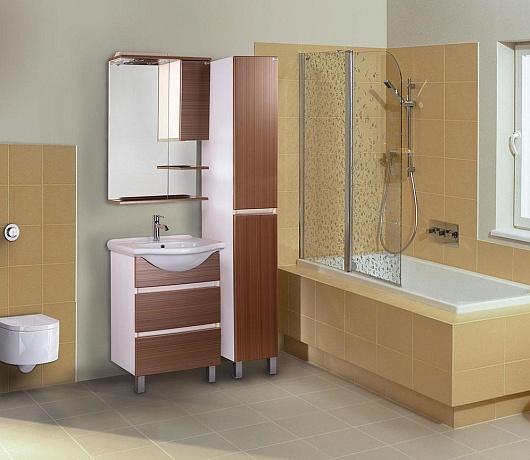 - Влагостойкое зеркальное полотно, две открытые полочки.