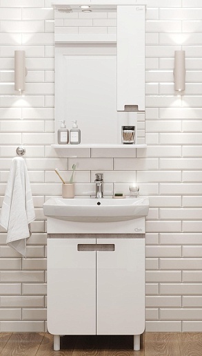 В комплекте: тумба, раковина, зеркальный шкаф, ножка (4 шт.).