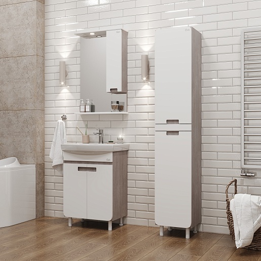 В комплекте: тумба, раковина, зеркальный шкаф, ножка (4 шт.).