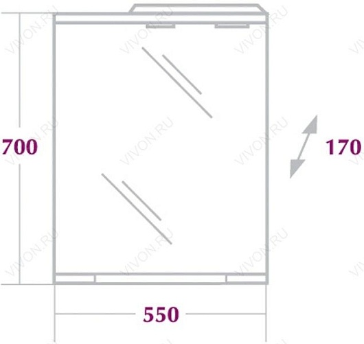 Комплектация: влагостойкое зеркальное полотно с полочкой. Встроенная подсветка с розеткой и выключателем.