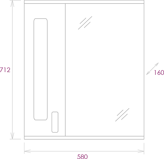 - Размеры (ШxГхВ): 580x160x712 мм.