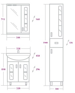 - тумба под раковину: выдвижной ящик, две распашные дверцы, полки внутренние, ручки - металл (хром), ножки передние (регулируемые) - металл (хром), ножки задние (регулируемые) - пластик