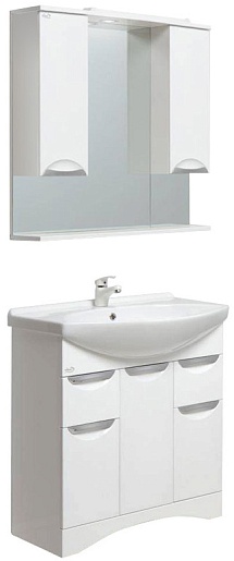 Описание: напольная тумба с тремя распашными дверцами и двумя выдвижными ящиками, фасады и корпус из MDF, фурнитура хром, фаянсовая раковина Лагуна 75 (Dreja).