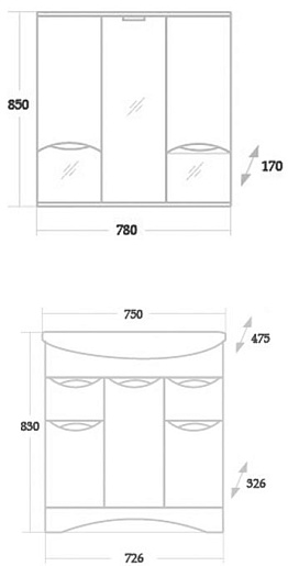 Размеры ШxГxВ: 780х170х850 мм