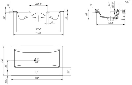 - Раковина Como 80 со слив-переливом.