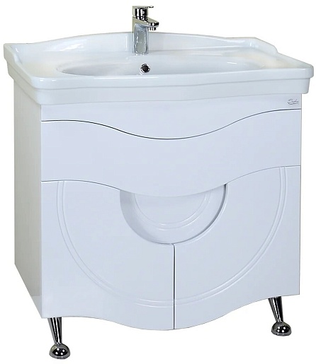 Комплектация: напольная тумба с двумя распашными фасадами, ящиком, умывальник Модерн 85.