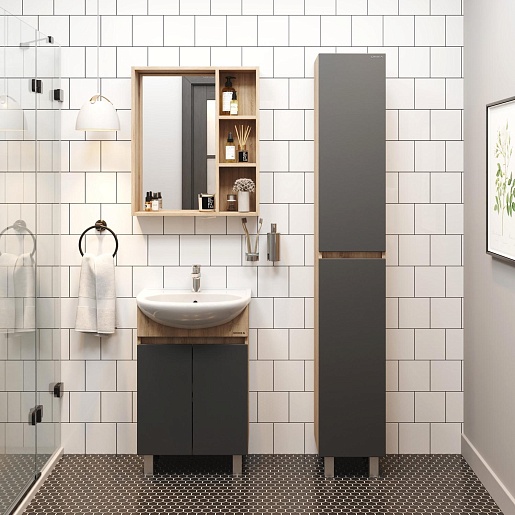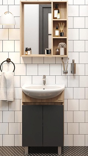 Тумба под раковину Милтон 50 серая/дуб сонома