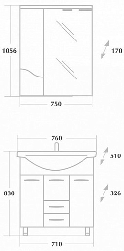 Размеры ШxГxВ: 750x170x1056 мм.