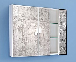 - арт. 209020 Зеркальный шкаф "Николь 90.00": зеркальные фасады, один из которых с рисунком, стеклянные полки