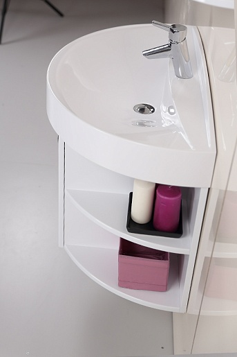 - тумба под раковину: 4 полки внешние, ручка металлическая, распашная дверца