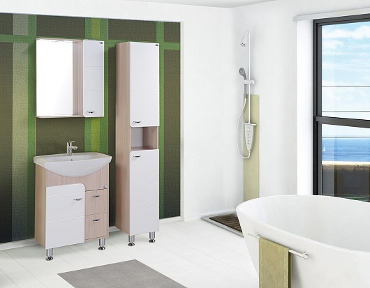 В комплекте: тумба, раковина, зеркальный шкаф, ножка (4 шт.).