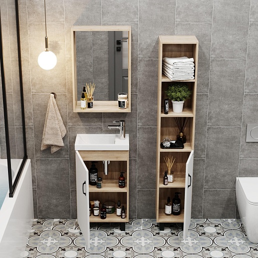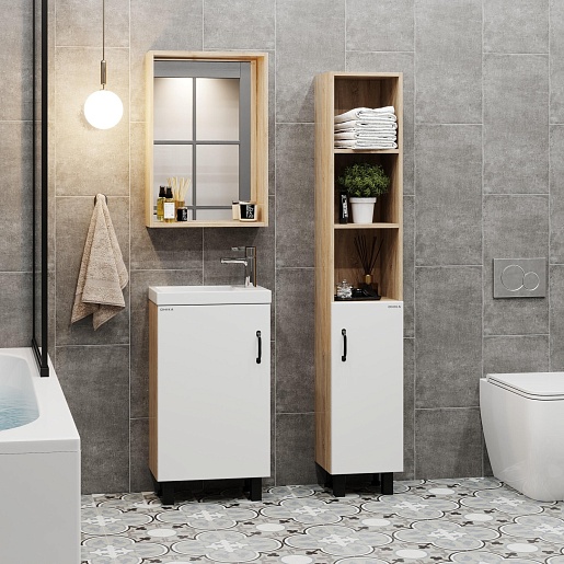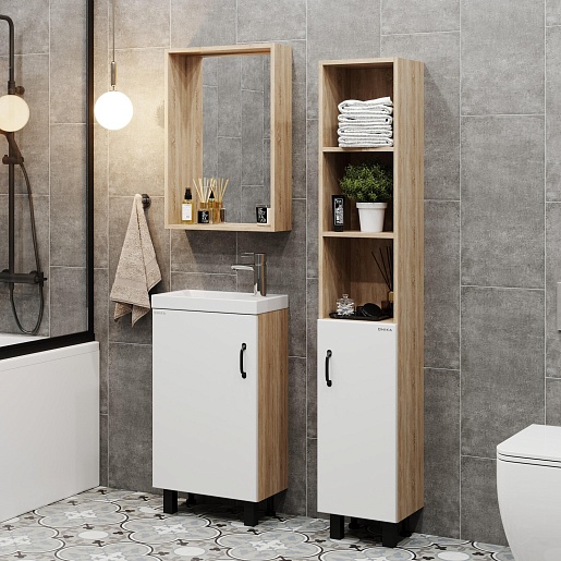 Onika Мебель для ванной Тимбер 45 L белая матовая/дуб сонома