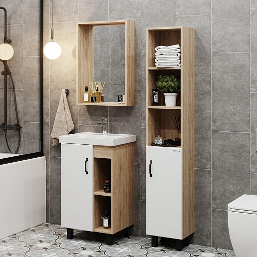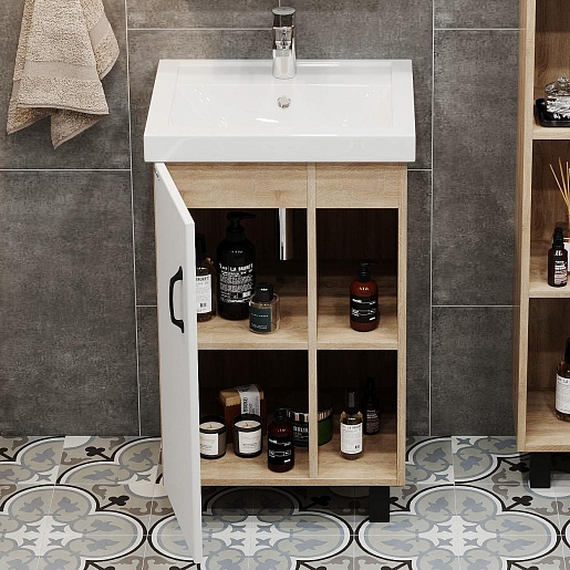 Тумба под раковину Тимбер 50 L белая матовая/дуб сонома