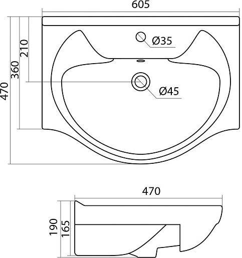 - Одно отверстие под смеситель.