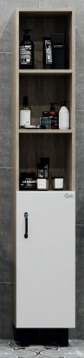Описание: пенал для ванной с распашной дверцей и открытыми полками.