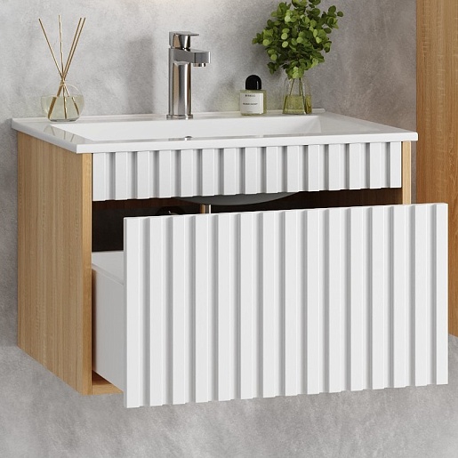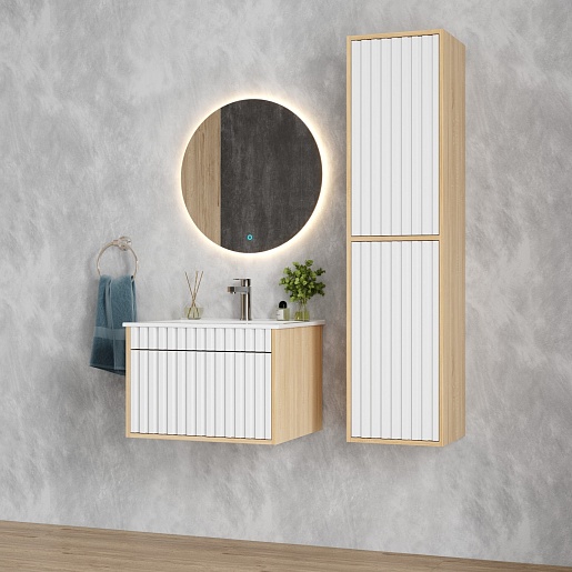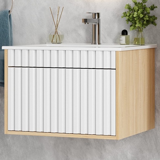 Тумба под раковину Дайлер 60 подвесная белая/дуб сонома