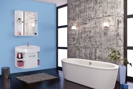 - тумба под раковину: 4 полки внешние, ручка металлическая, распашная дверца