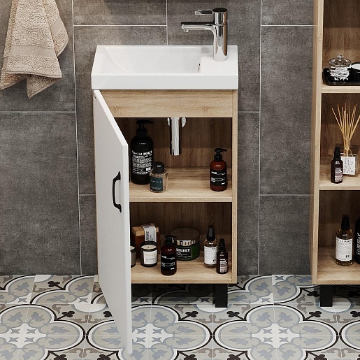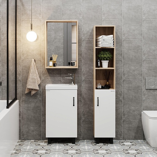 Тумба под раковину Тимбер 45 L белая матовая/дуб сонома