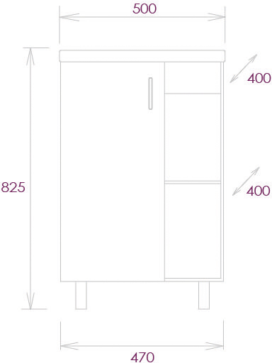 - 1 распашная дверца, 2 открытые полки.