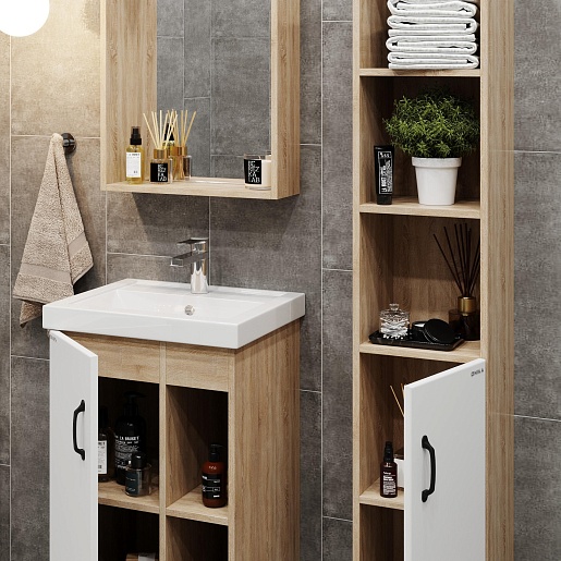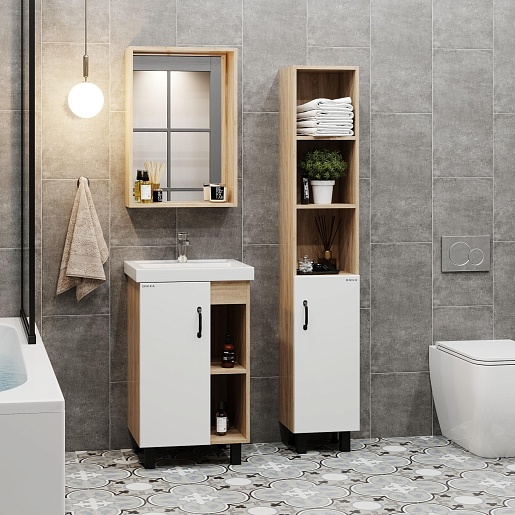 Тумба под раковину Тимбер 50 L белая матовая/дуб сонома