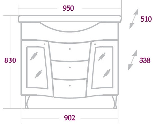 Размеры ШхГхВ: 950х510х830 мм.